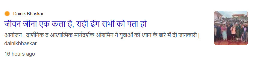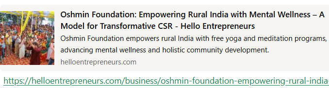 The Oshmin Foundation is a non-profit organisation that illuminates an awareness in India and worldwide through rejoiceness in meditation, spiritual understanding, yoga, mental wellness, sound therapy, and Living life is an art.